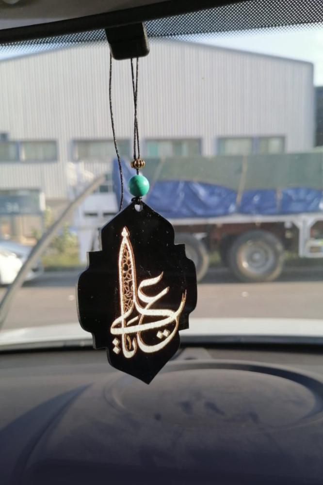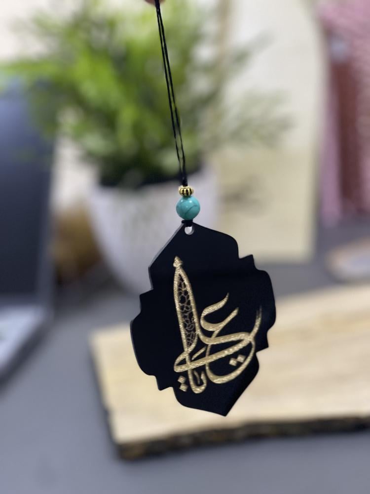 تعليقة سيارة اكريلك مزينة بالخرز مع مخطوطة ياعلي