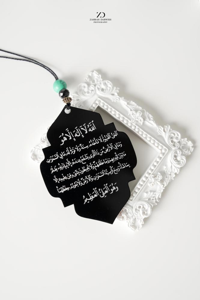 تعليقة سيارة اكريلك مزينة بالخرز مع مخطوطة اية الكرسي