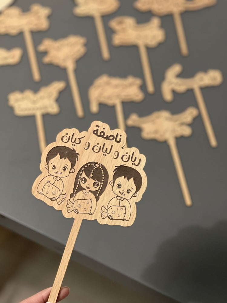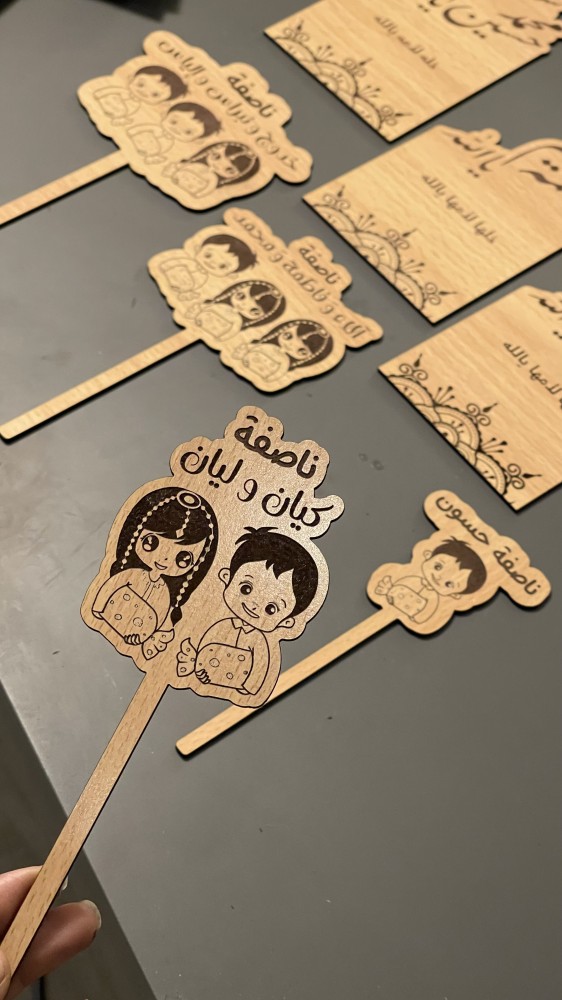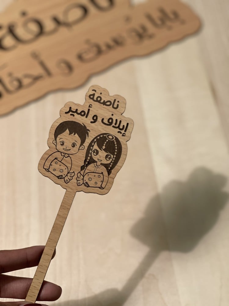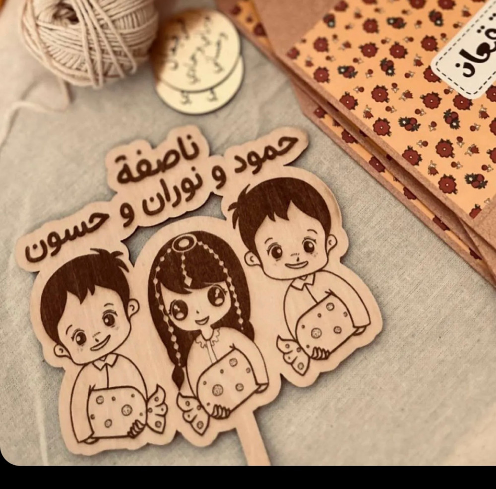 تغريسة للناصفة بحجم ١٥سم ، مع رسوم و اسماء شخصين او ثلاثة ، يمكن استخدامها ضمن توزيعات ابناءكم للناصفة .