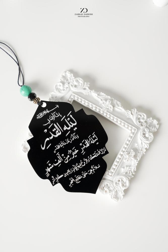 تعليقة سيارة اكريلك مزينة بالخرز مع مخطوطة سورة القدر للحفظ